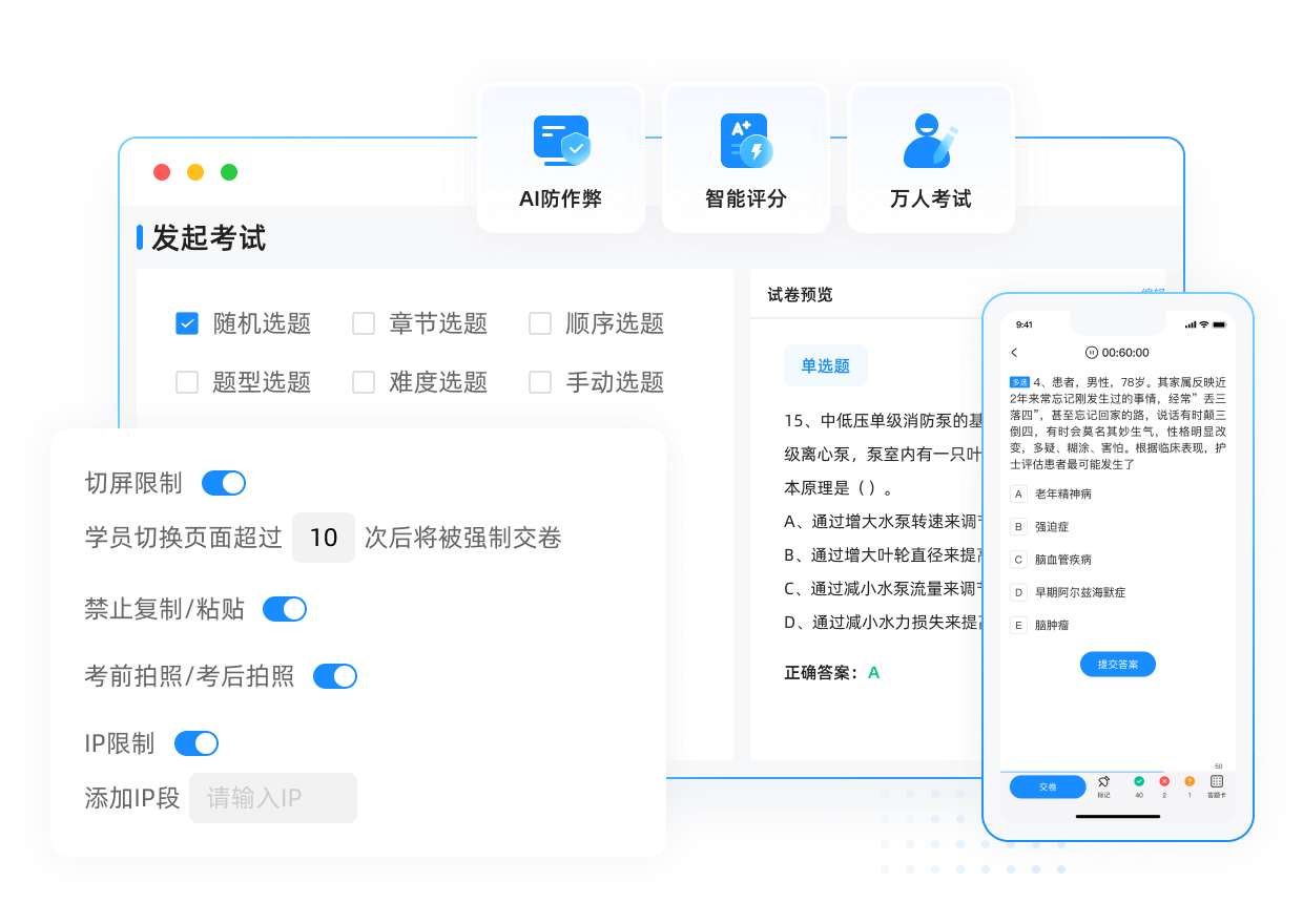 在线考试,模拟真实考场环境,考后自动阅卷评分